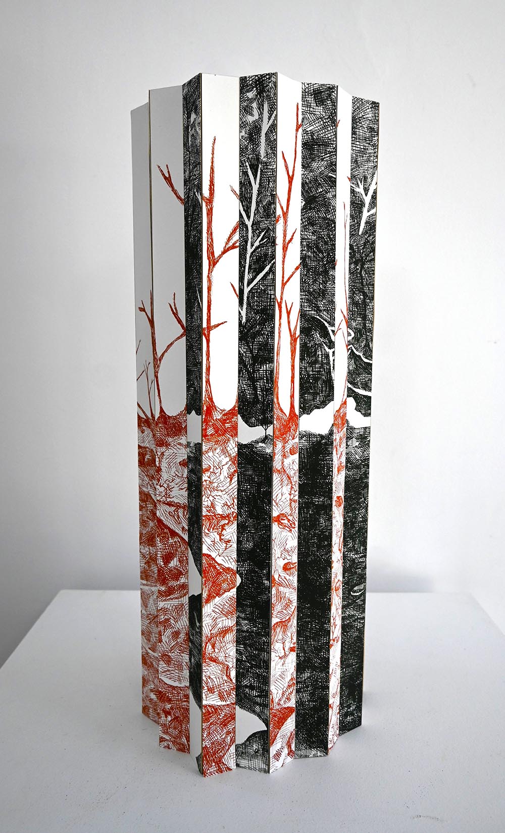 Artist Statement:A Remnant of Vitality explores my observations of water for a variety of its innate properties, specifically its self-renewing abilities. My contemporary elaboration upon this concept involves the transformation of 2 flat images into a tangible representation of personal experience; as with drought, evidence of flora and fauna will be limited to the succinct remnants of timber and bone. And as per the cylindrical form my piece takes, I would seek to invite the audience to circle the artwork to perceive it from all viewing angles; where they may ultimately see that from all viewing perspectives, time remains linear, with its effects being fully foreseeable.