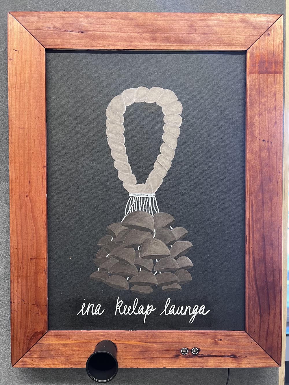 Artist Statement:This artwork explores my Torres Strait heritage through the Kulap shaker, appropriating Magritte’s pipe to reflect cultural symbolism. The work invites interaction through sound, deepening connection. Kulaps are used in island dances for celebrations like tombstone openings and birthdays, each holding rhythm, memory and ceremony. Though this is not a real Kulap, but an image, it asks us to see beyond the visual—to honour culture through meaning and experience.
