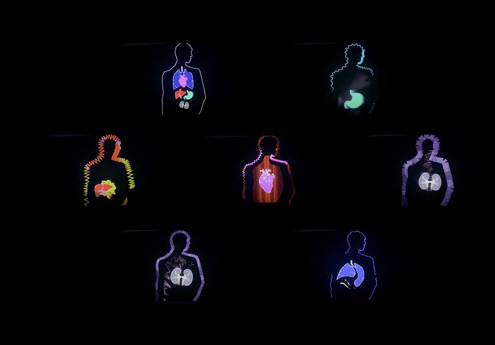 Artist Statement:I have always felt emotions deeply but have lived my life unable to express them outside. As teenagers, we are expected to look stable from the outside and our true emotions are always suppressed. The organs I used in this artwork such as the heart, lungs, stomach, liver and kidneys are animated as they move reactively depending on emotions such as excitement, sadness, anger, anxiety and fear. This artwork is displayed as an installation, and it creates an experience that allows the audience to face their inner emotions directly by standing in front of a projector and visualising organs superimposed on their bodies. Visualising how invisible emotions affect the body expresses the overlapping and complexity of emotions. It’s not just organs anatomy, but organs for living through emotions. Beneath the Surface offers a moment when the audience realises that the invisible emotions are indeed existing inside the body.
